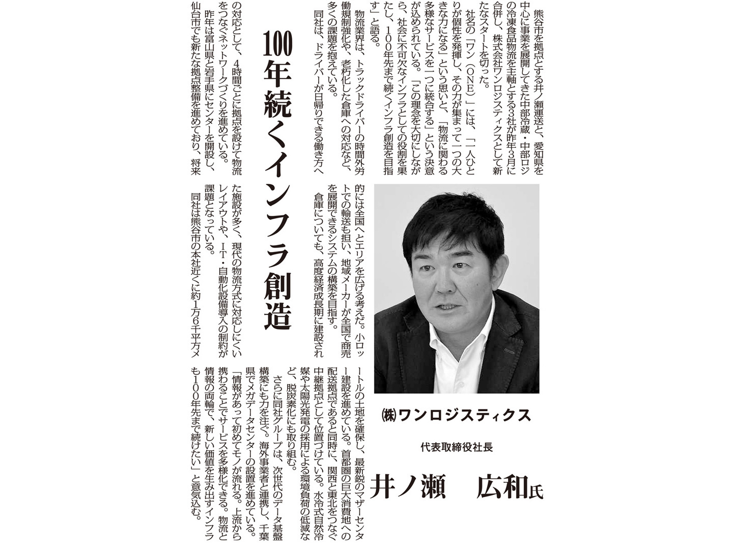 2026年1月7日発行の埼玉新聞「2026新春インタビュー 埼玉この人に聞く―150人のトップが語る今年の展望―」に、弊社代表取締役社長 井ノ瀬広和のインタビュー記事が掲載されましたのでお知らせいたします。